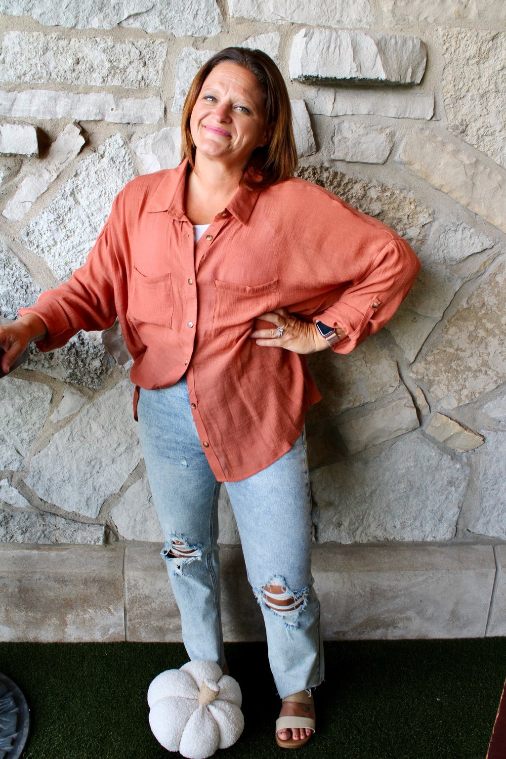 Fall Things Long Sleeve Pocketed Top | Rust