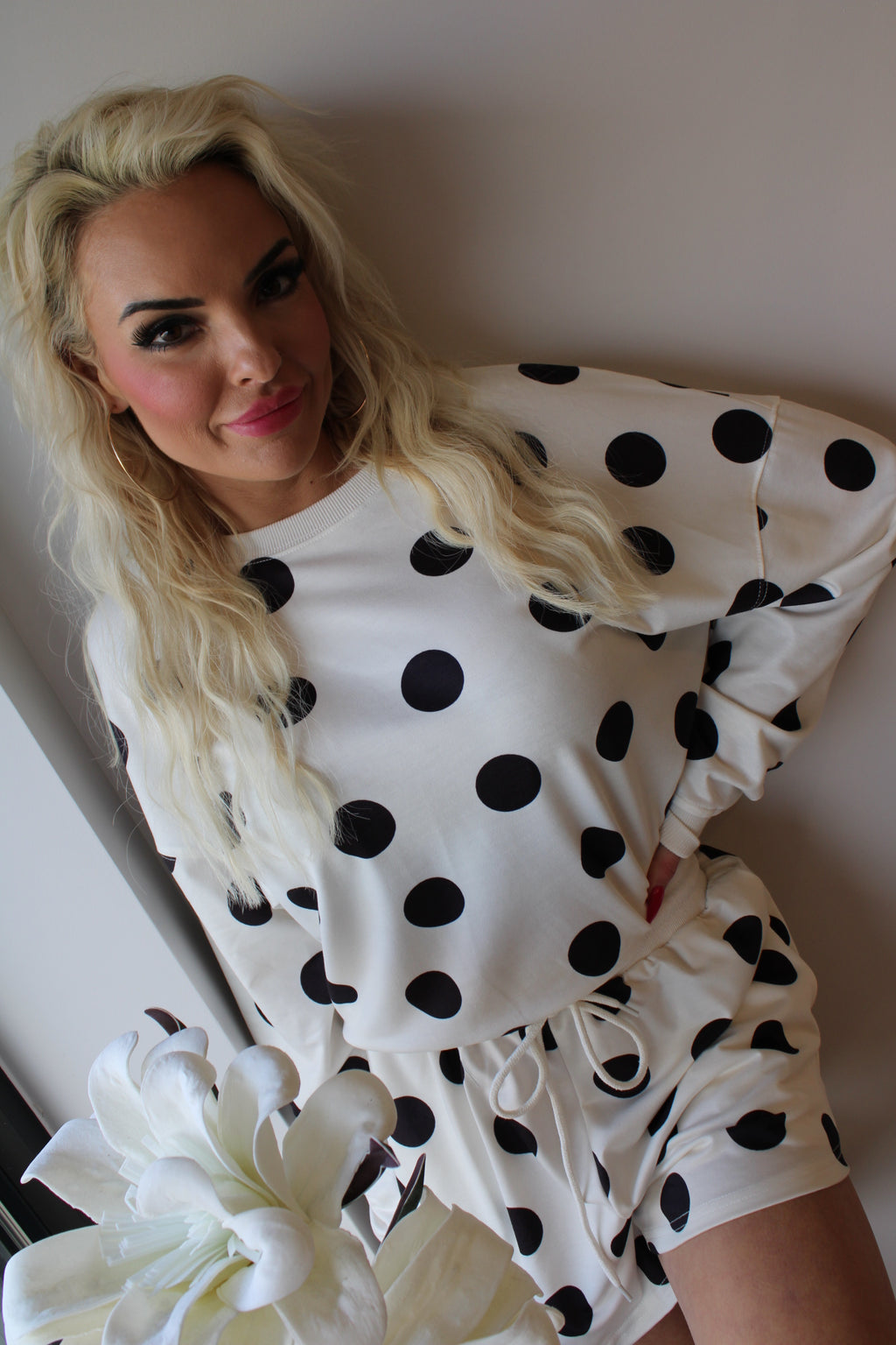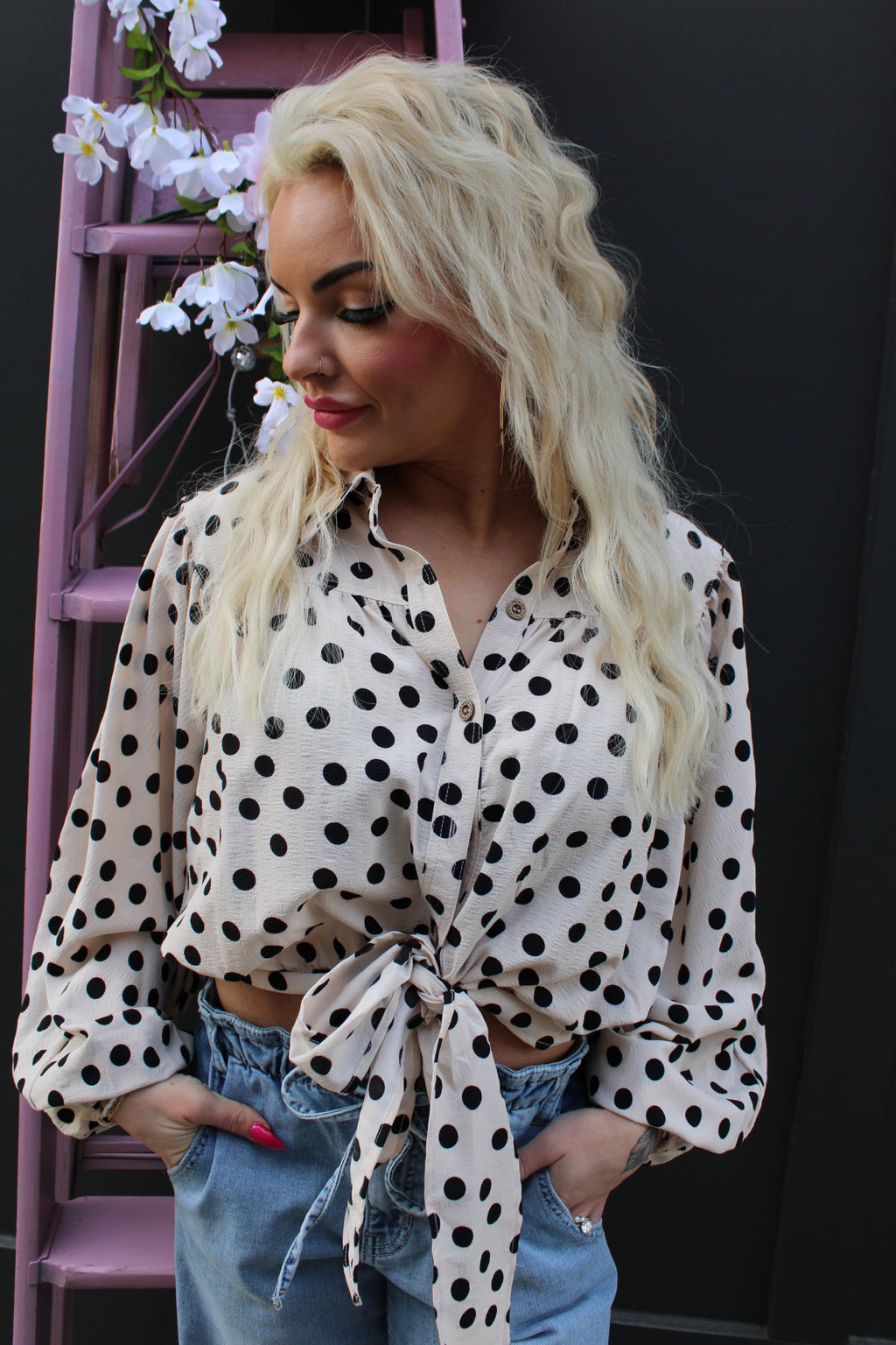 Polka Dot Print Tie Hem Detail Crop Blouse