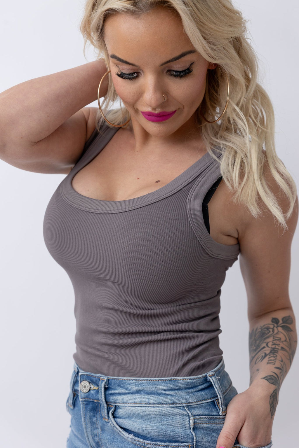 Nikibiki Reversible Ribbed Tank Top: Whale Gray