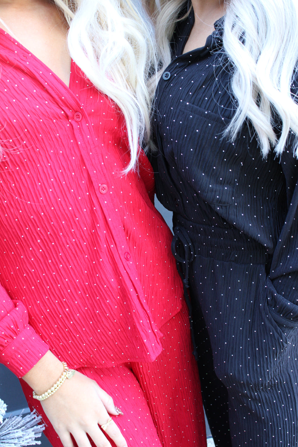 Merry Mama Crinkled Rhinestone Lounge Set Red