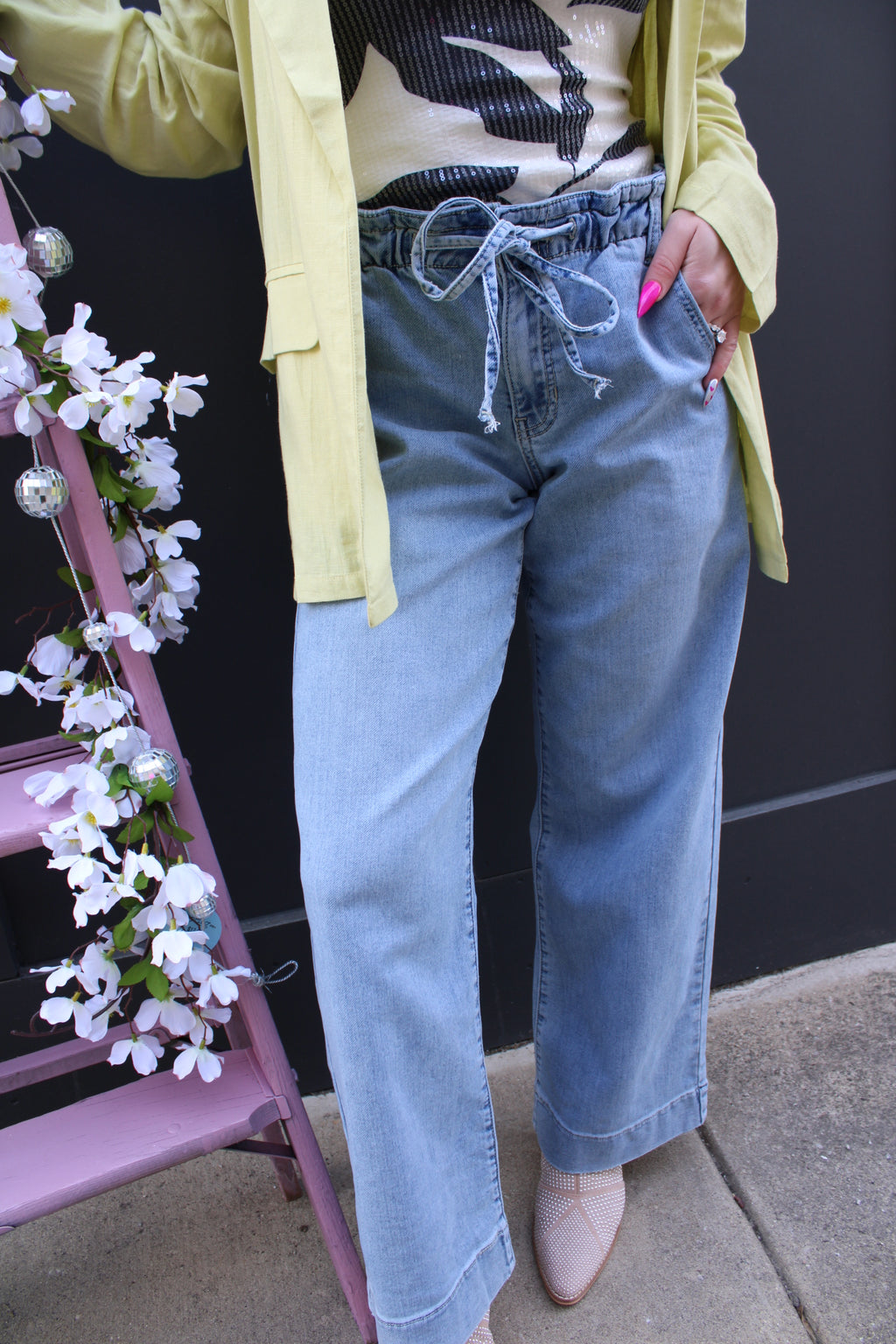 Drawstring Waist Frayed Hem Short | Denim Blue