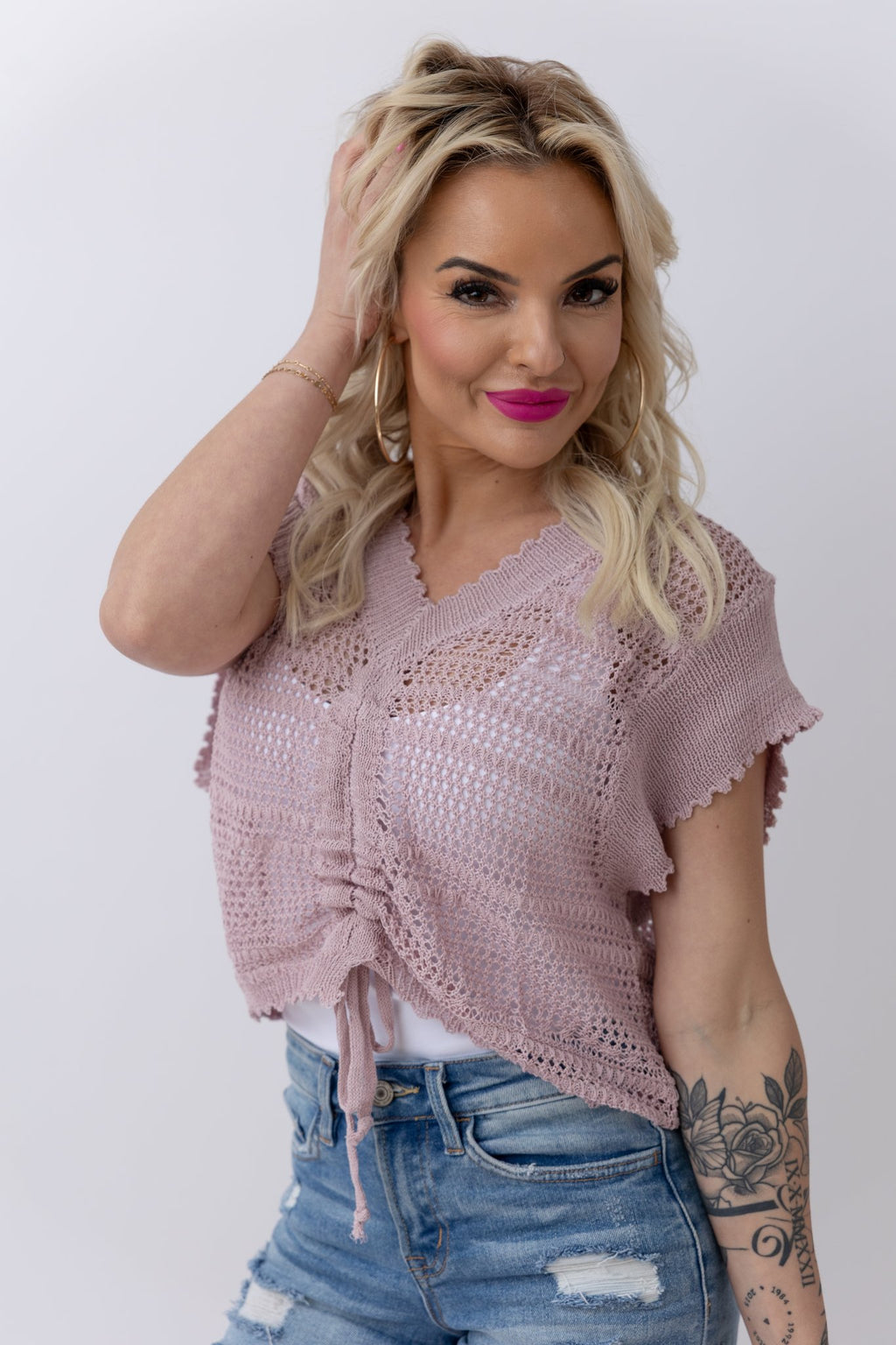 Sweet Breeze Eyelet Top | Mauve
