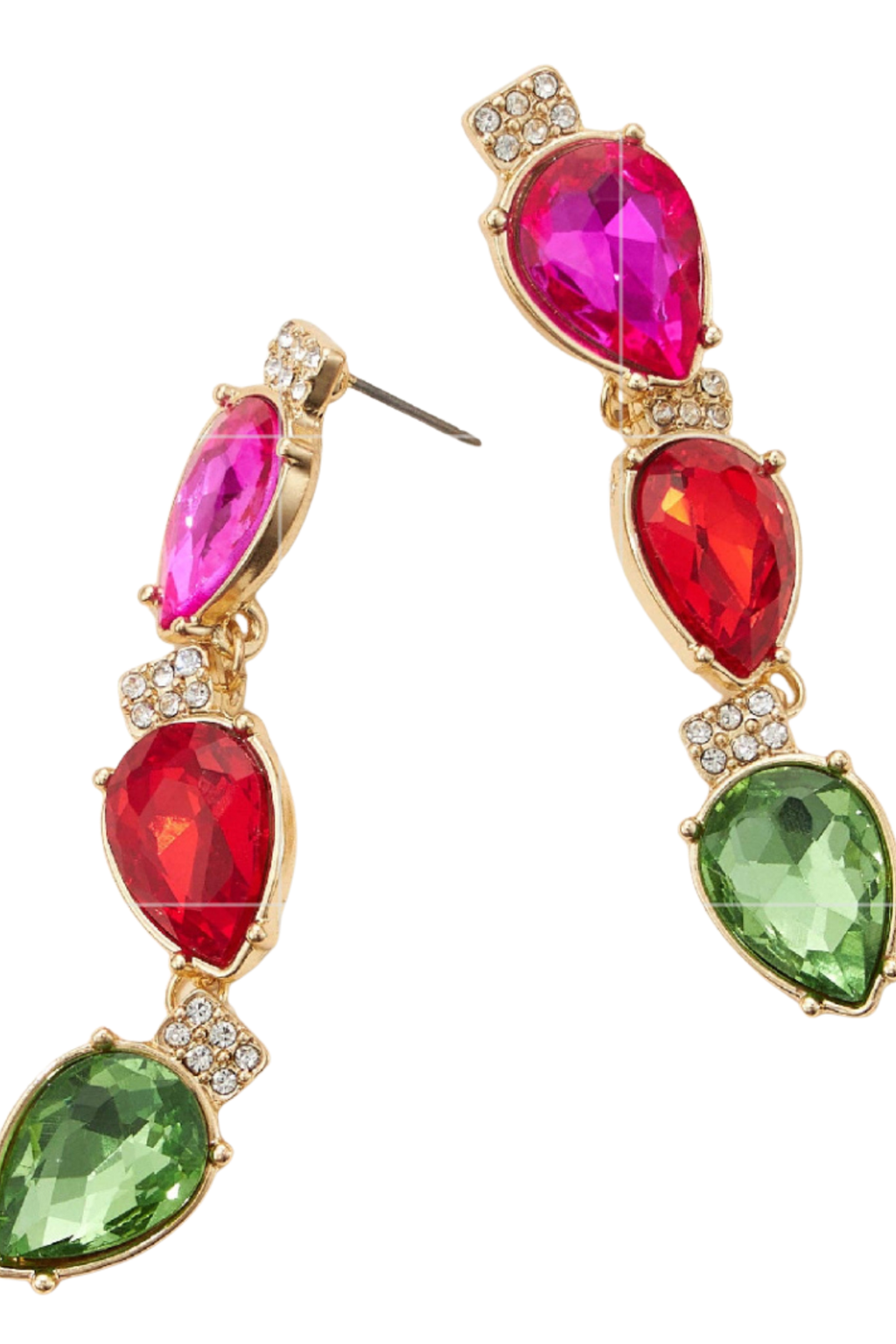 Gold Christmas Tree Cutout with Multi Beaded Accent Open Circle 2" Earring