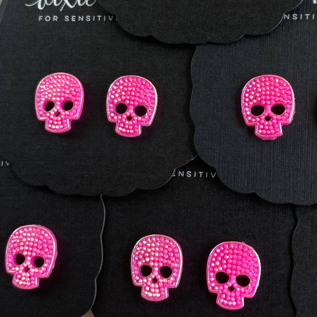 Stone Paved Two Tone Textured Metal Chain Link Bracelet