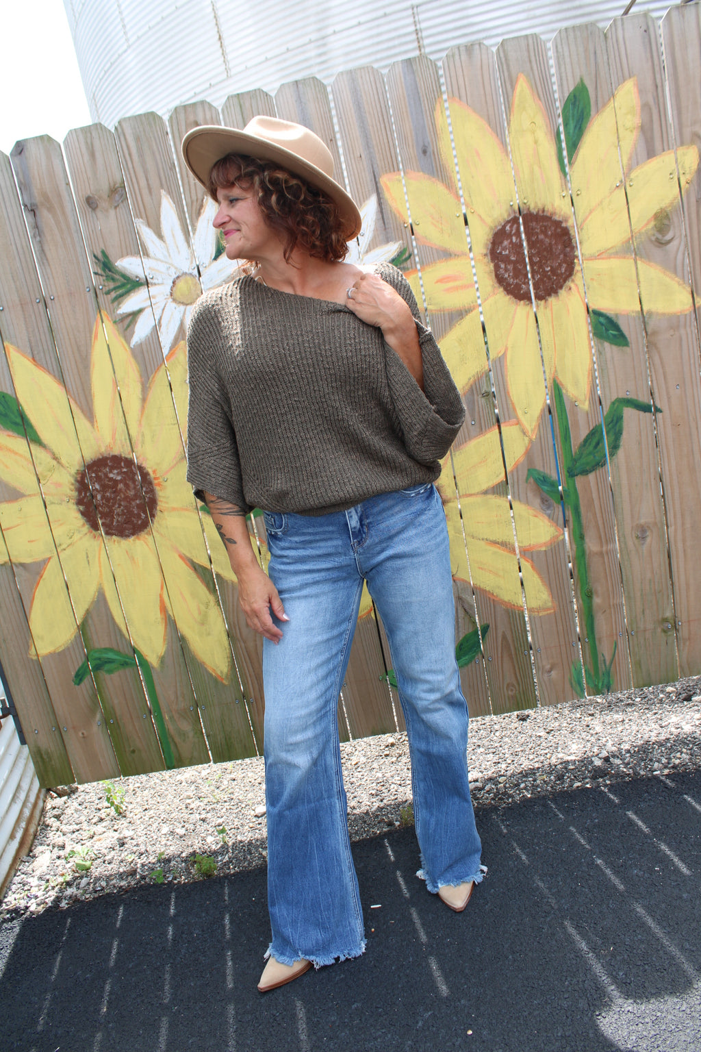 Blue Dream Waffle Knit Ruffled Sleeve Top