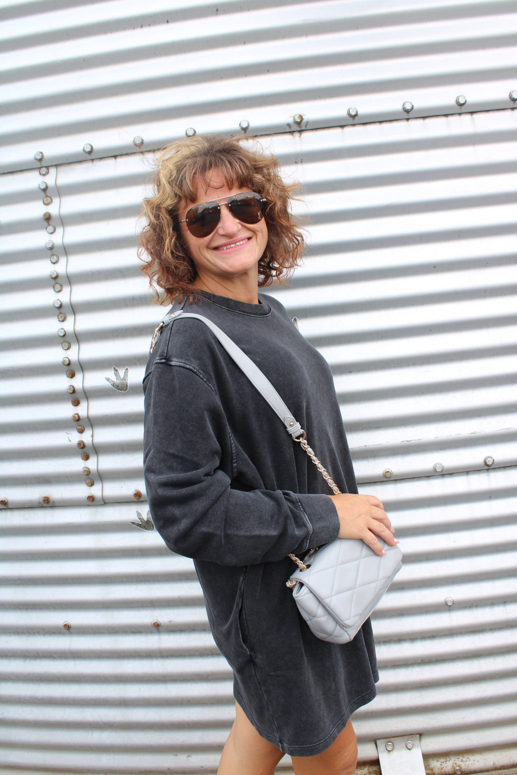 Prague Quilted Crossbody w/ Chain Strap | Gray