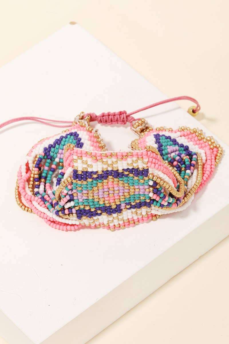 Boho Seed Beaded Adjustable Bracelet | Pink