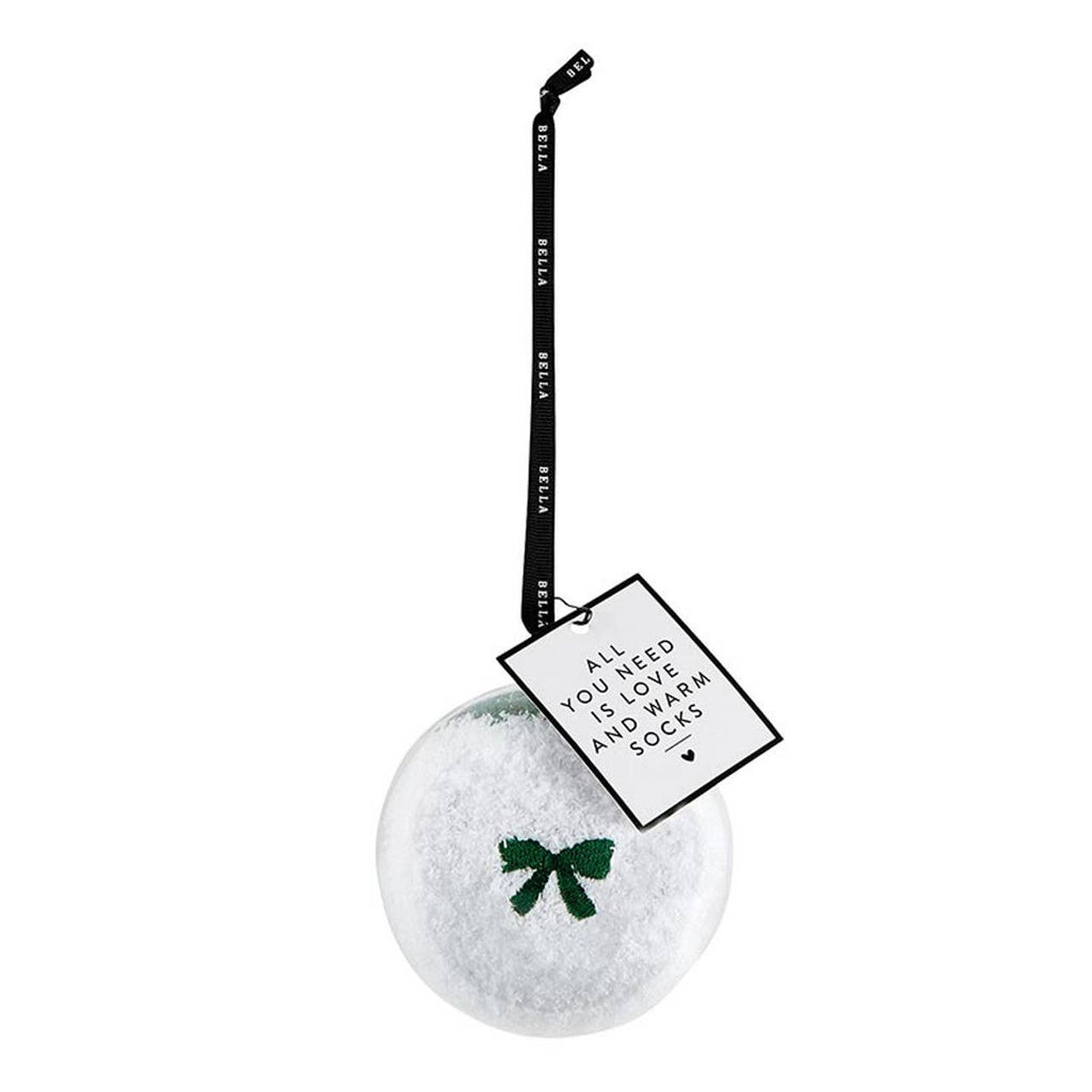 Cozy Socks in Ornament - White with Green Bow: 100% Polyester / One Size Fits Most
