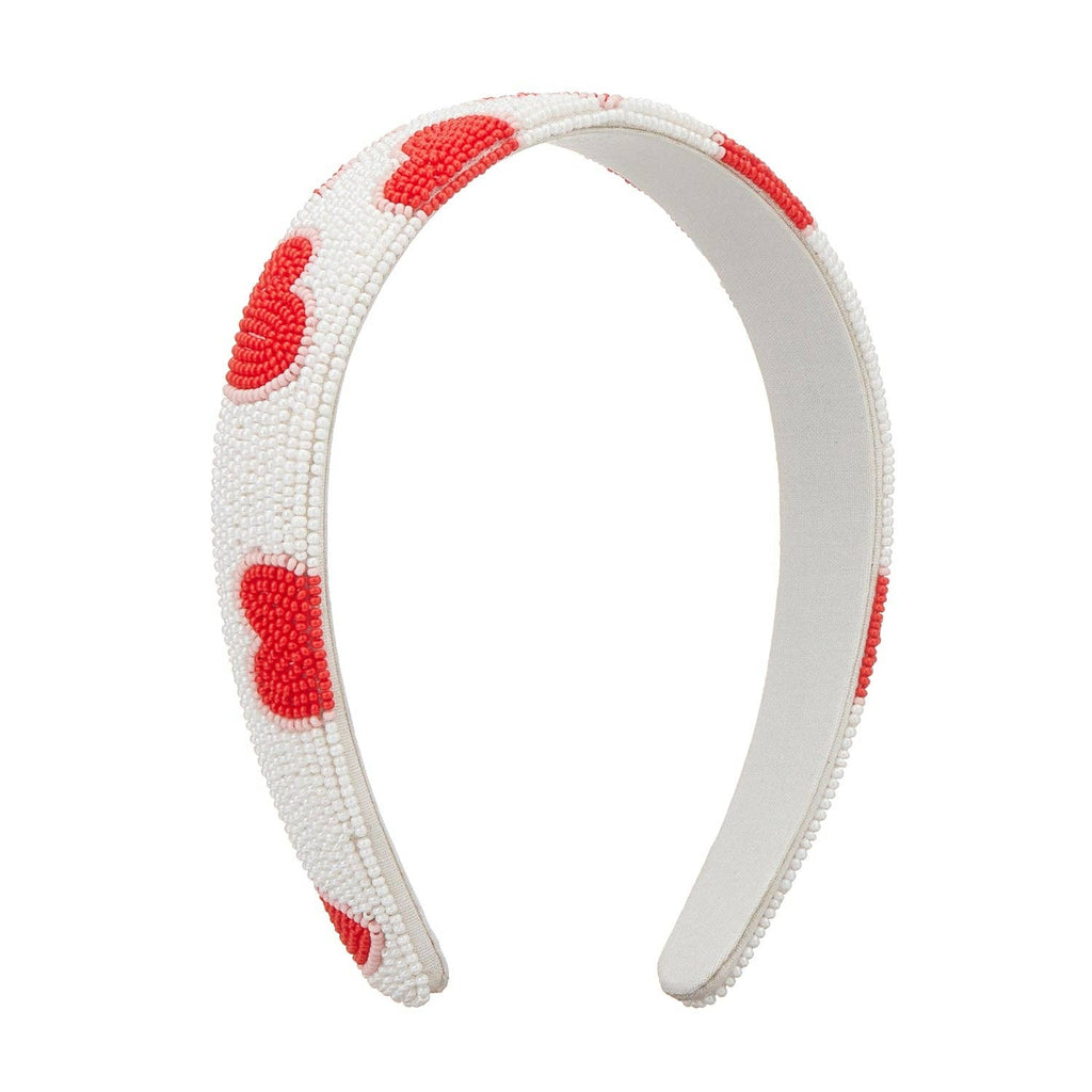 Beaded Heart Headband – Handcrafted Valentine's Day-Inspired Accessory: Red