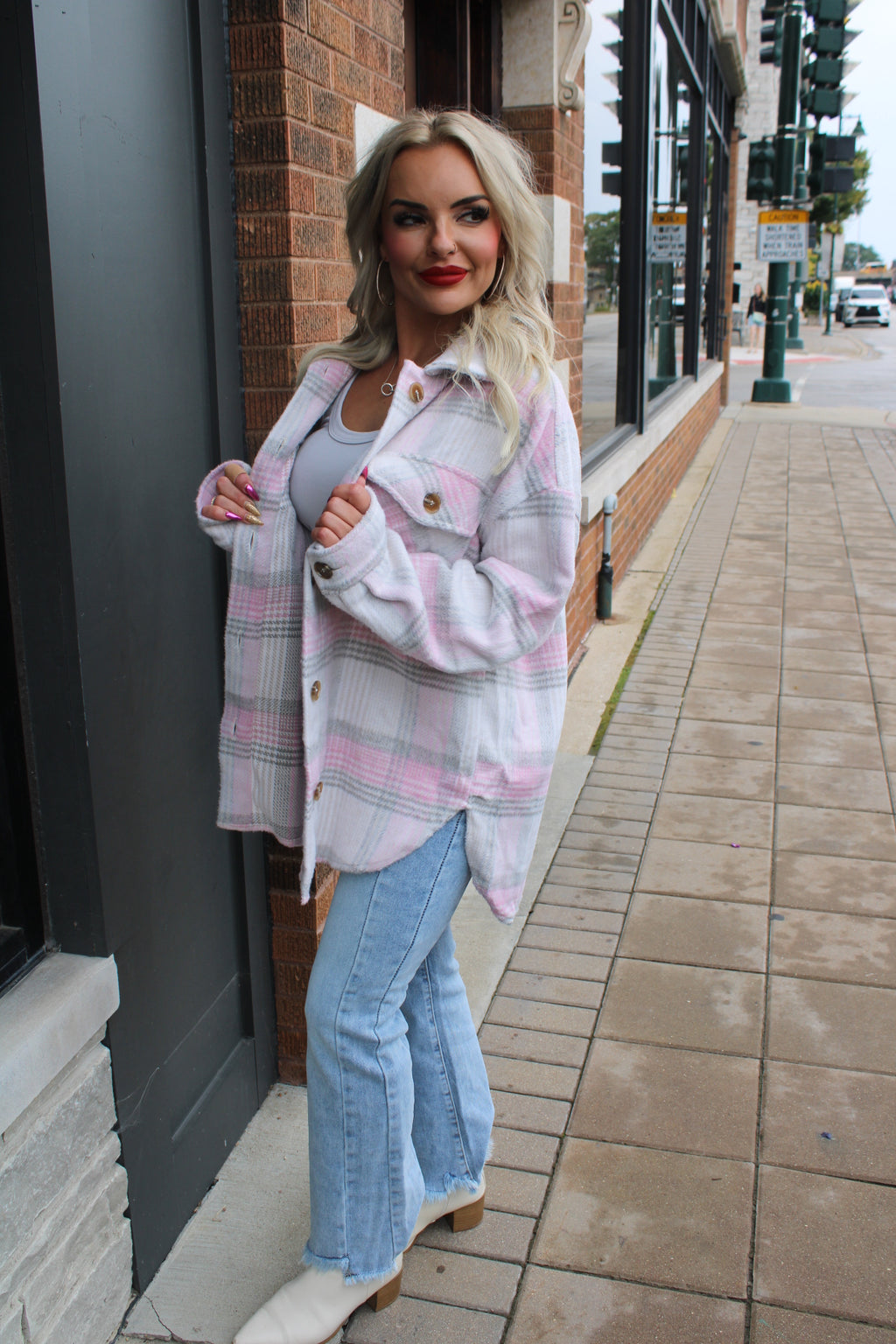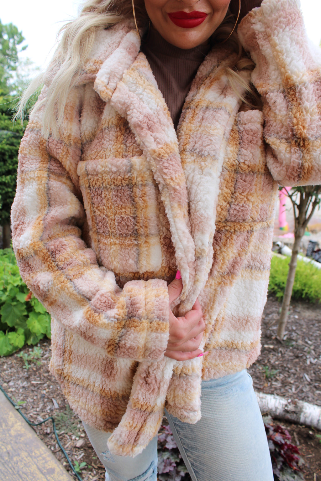 Fall Things Check Printed Fleece Shacket | Black Beige