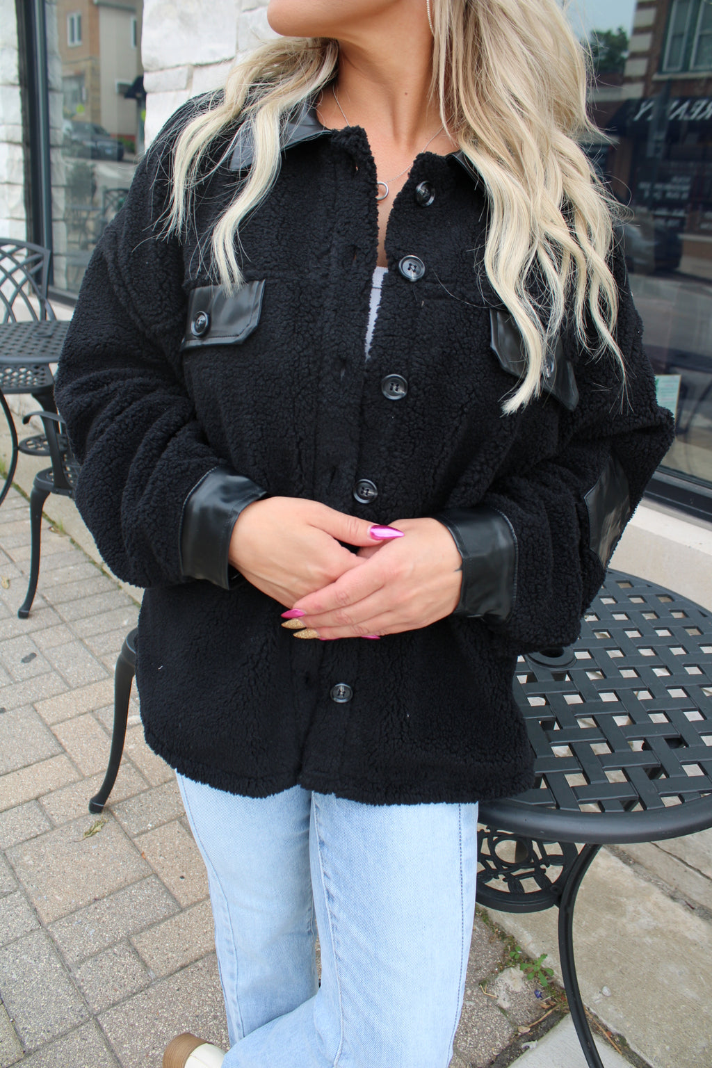 Caroline Faux Leather Shirt Jacket with Sash | Black