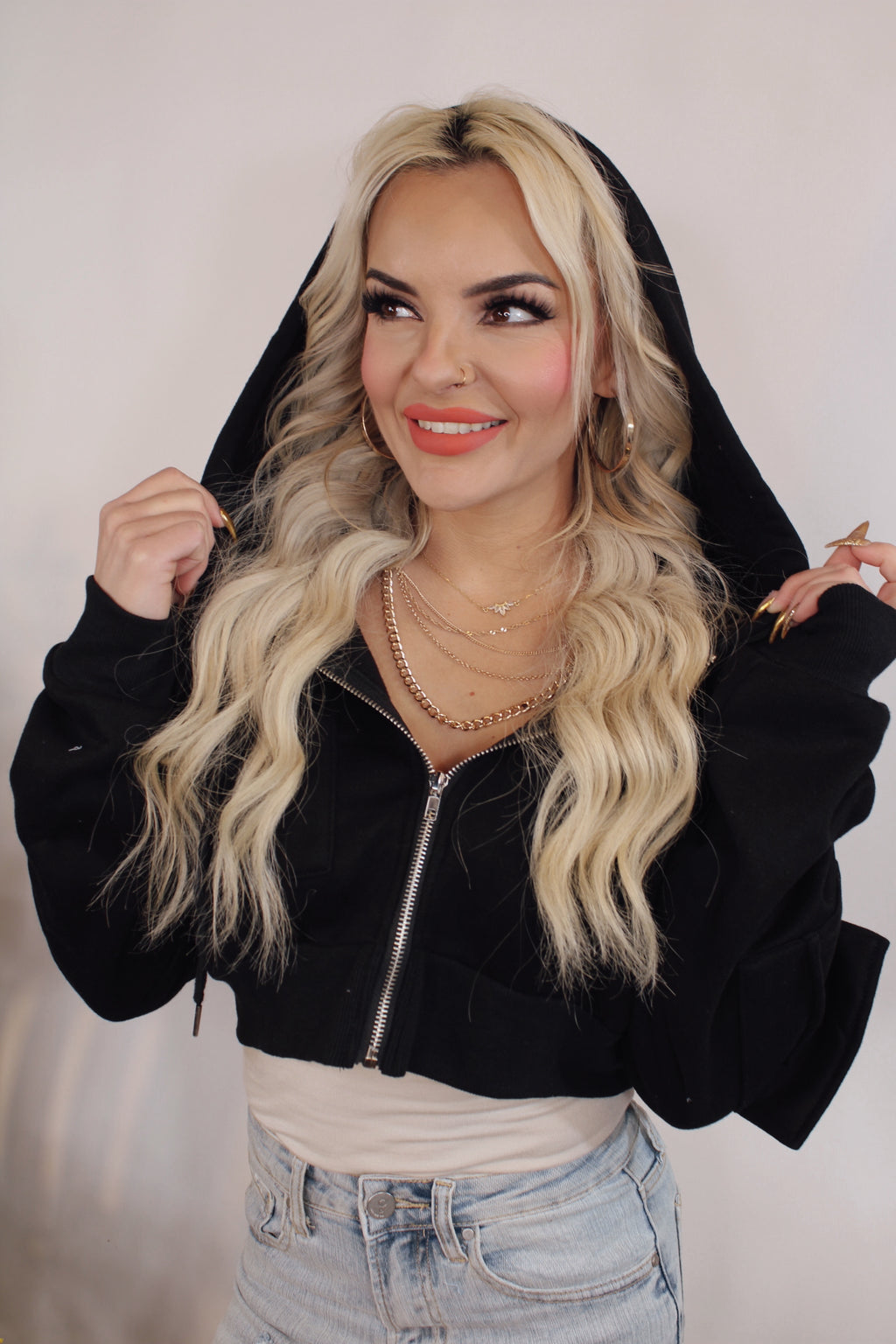 Tribeca French Terry Cropped Cargo Hoodie | Black