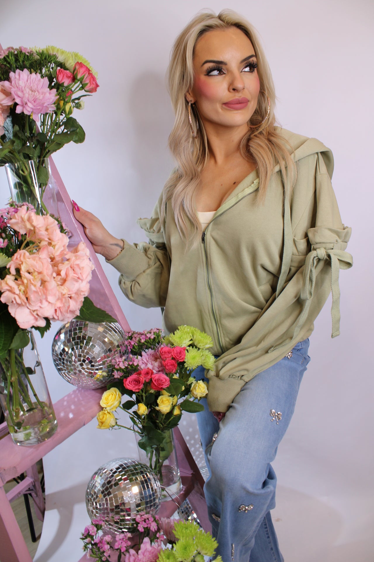 Meet the hoodie that’s anything but basic — our Ruffled Puff Sleeve Zip-Up Hoodie in the prettiest shade of sage.