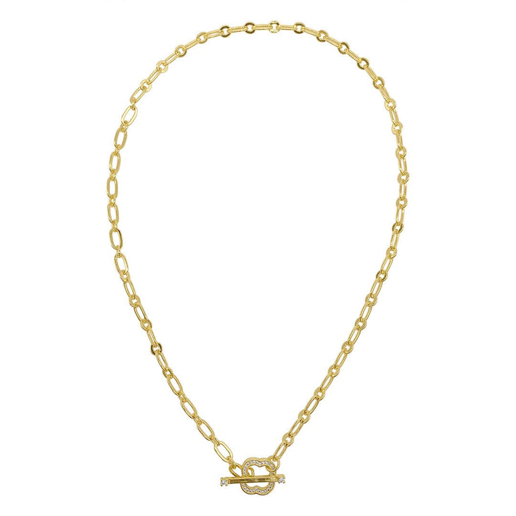 Crystal Clover Paper Clip Chain Toggle Necklace gold