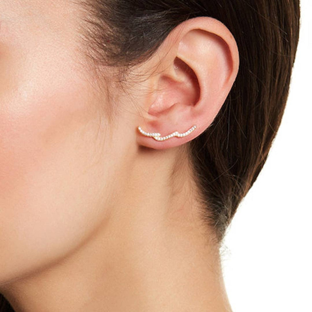 Wave Ear Climber Earrings silver gold: Yellow gold