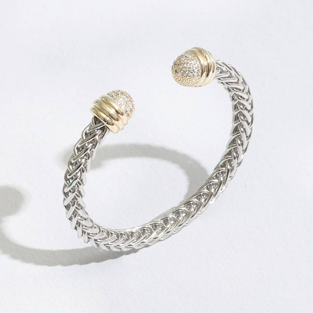 Braid Wire Design Bangle CZ Cylinder Edge Bracelet: B / ONE SIZE