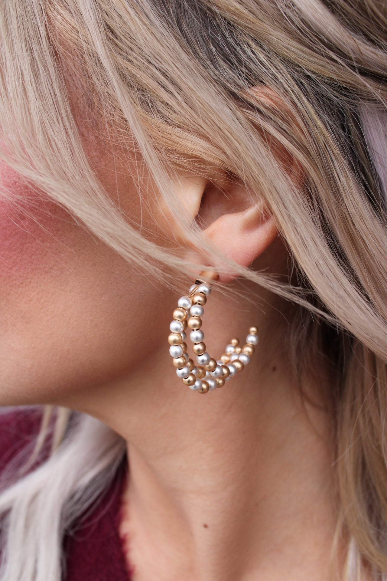 Gold and Silver Triple Layered 1" Hoop Earring