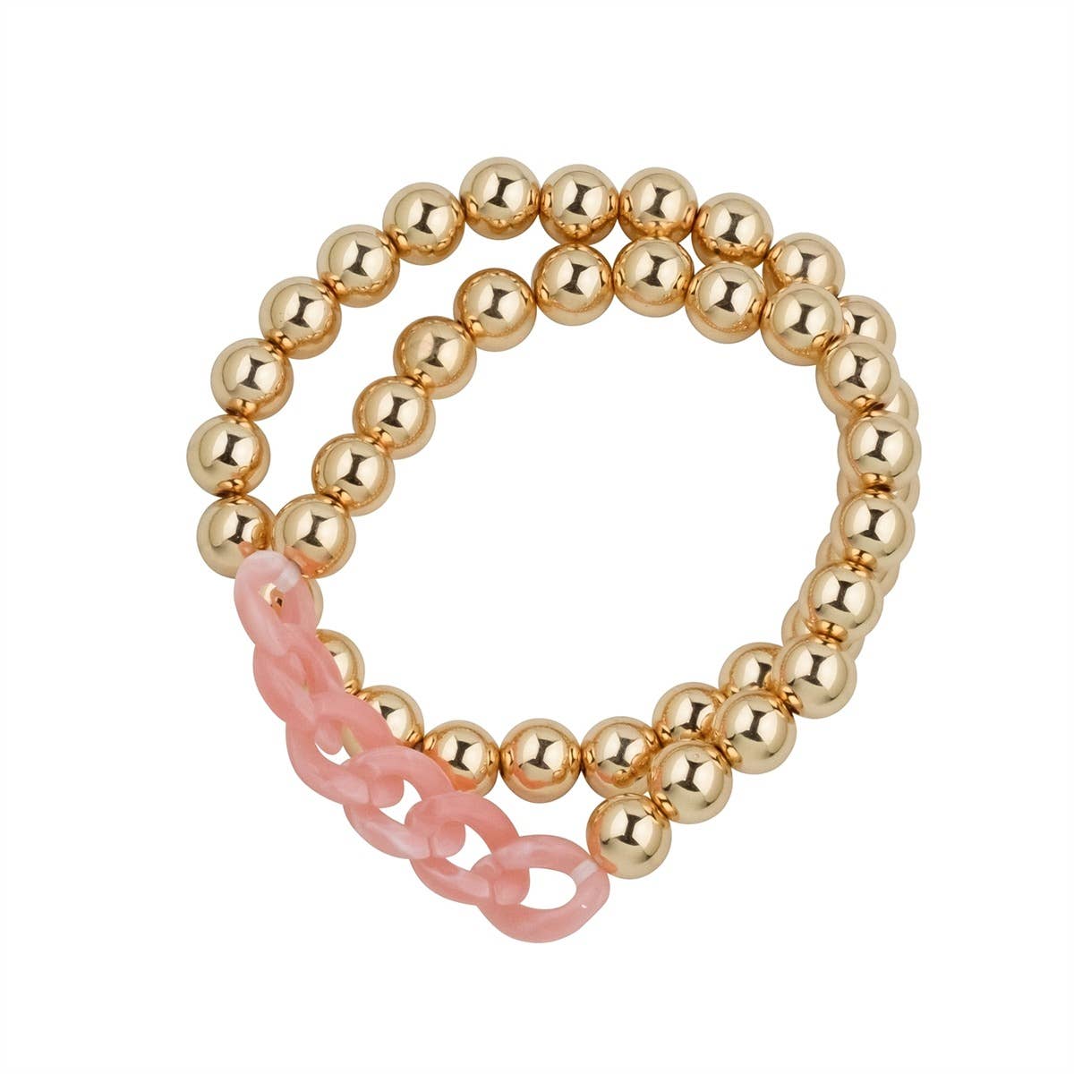 Pink Acrylic Chain and Gold Beaded 2 Strand Stretch Bracelet CB31