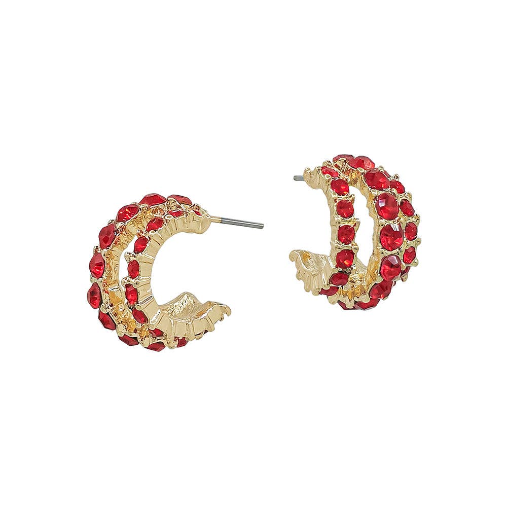 Three Row Red Rhinestone .75" Hoop Earring