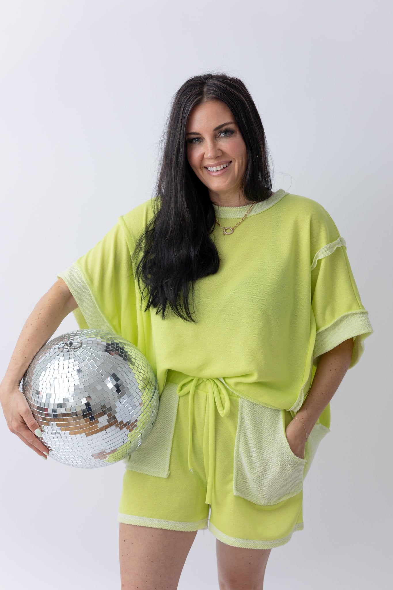 Lightweight and easy to style, this lime green oversized top pairs perfectly with biker shorts, denim, or leggings for an effortlessly cool look. Whether you’re running errands, heading to brunch, or just keeping it casual, it brings a fresh pop of color and standout style to any outfit.