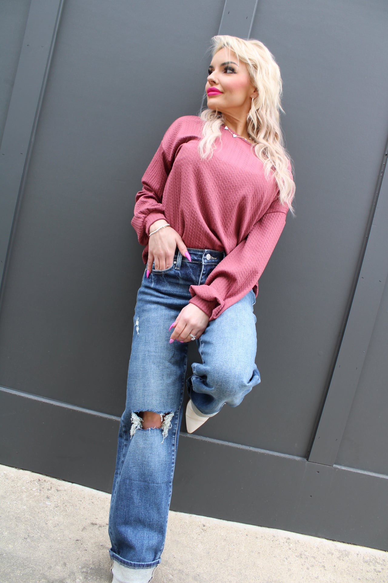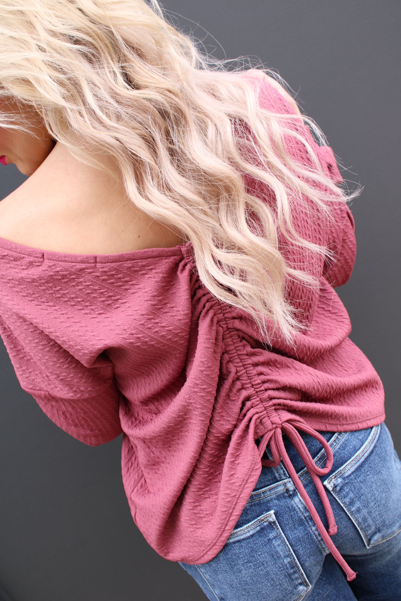 Long Sleeve Back Ruching Cable Top | Mauve