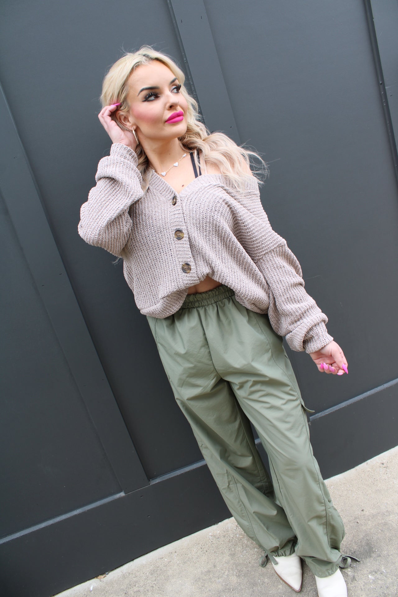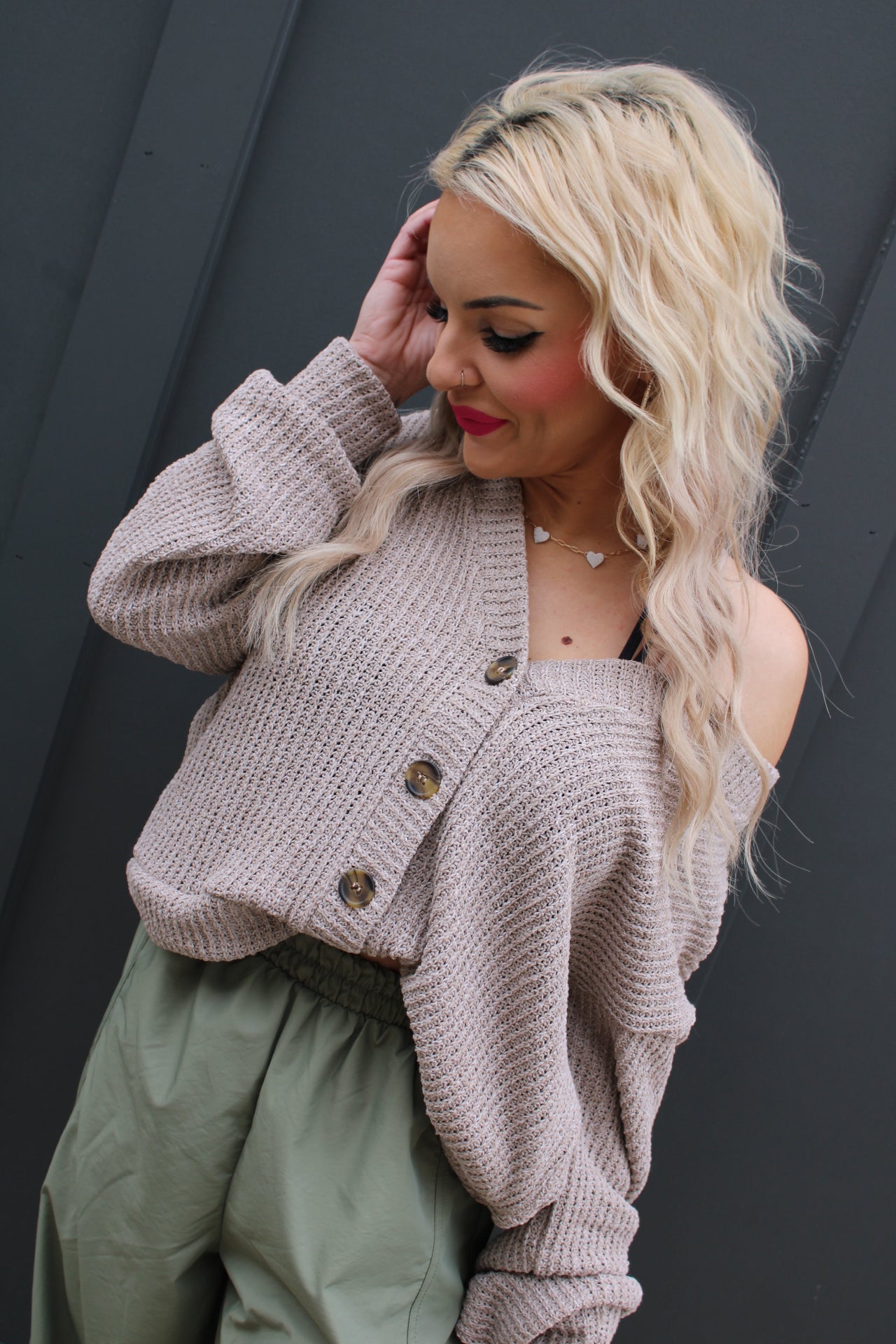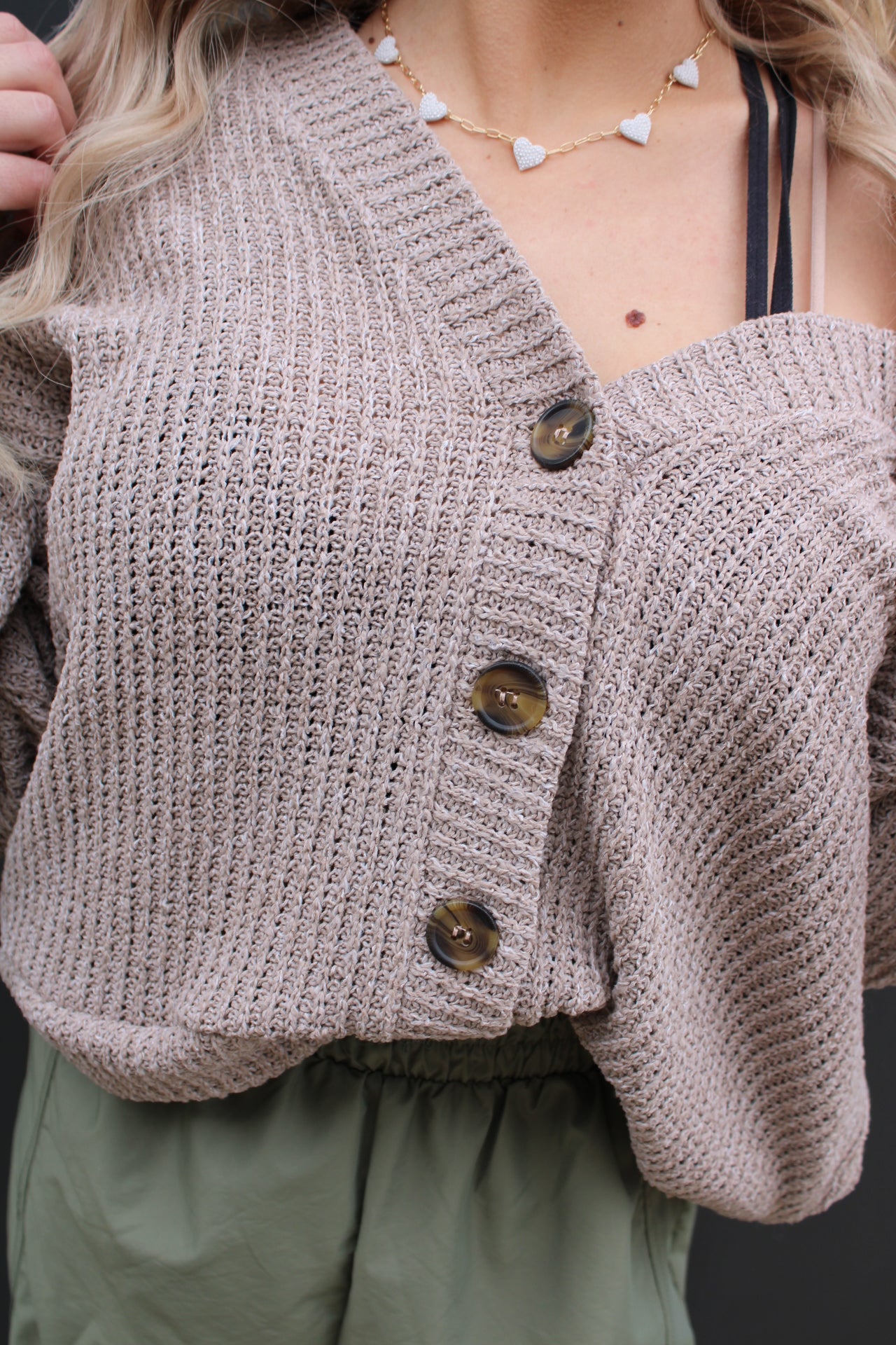 Long Sleeve Button Down Crop Cardigan | Taupe
