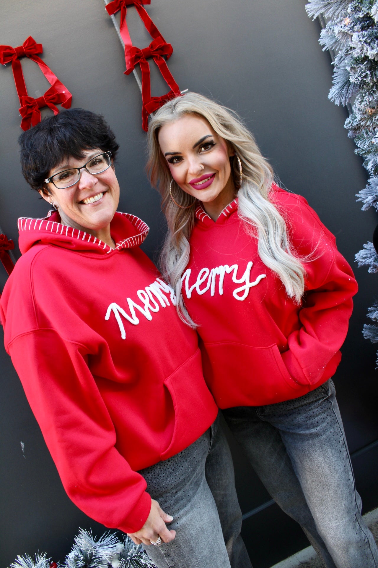 Get into the festive spirit with our Merry Babe Hooded Sweatshirt! Featuring a bold red color and a playful "merry" graphic in white, this holiday sweatshirt will keep you warm and stylish throughout the holiday season. Stay cozy and make a statement with this fun and festive sweatshirt.