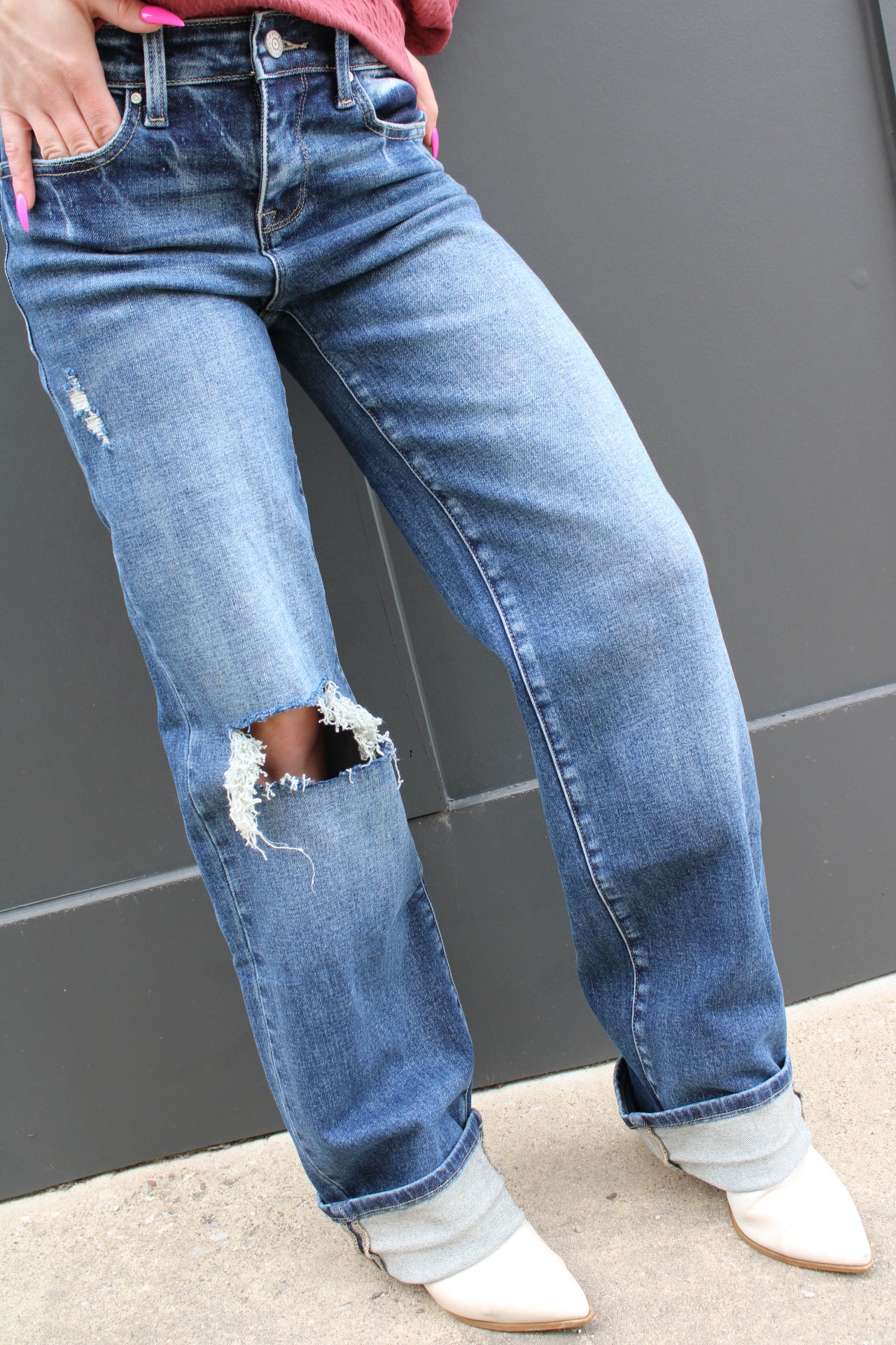Petra Mid Rise Loose Straight w/ Cuffed Hem Jeans