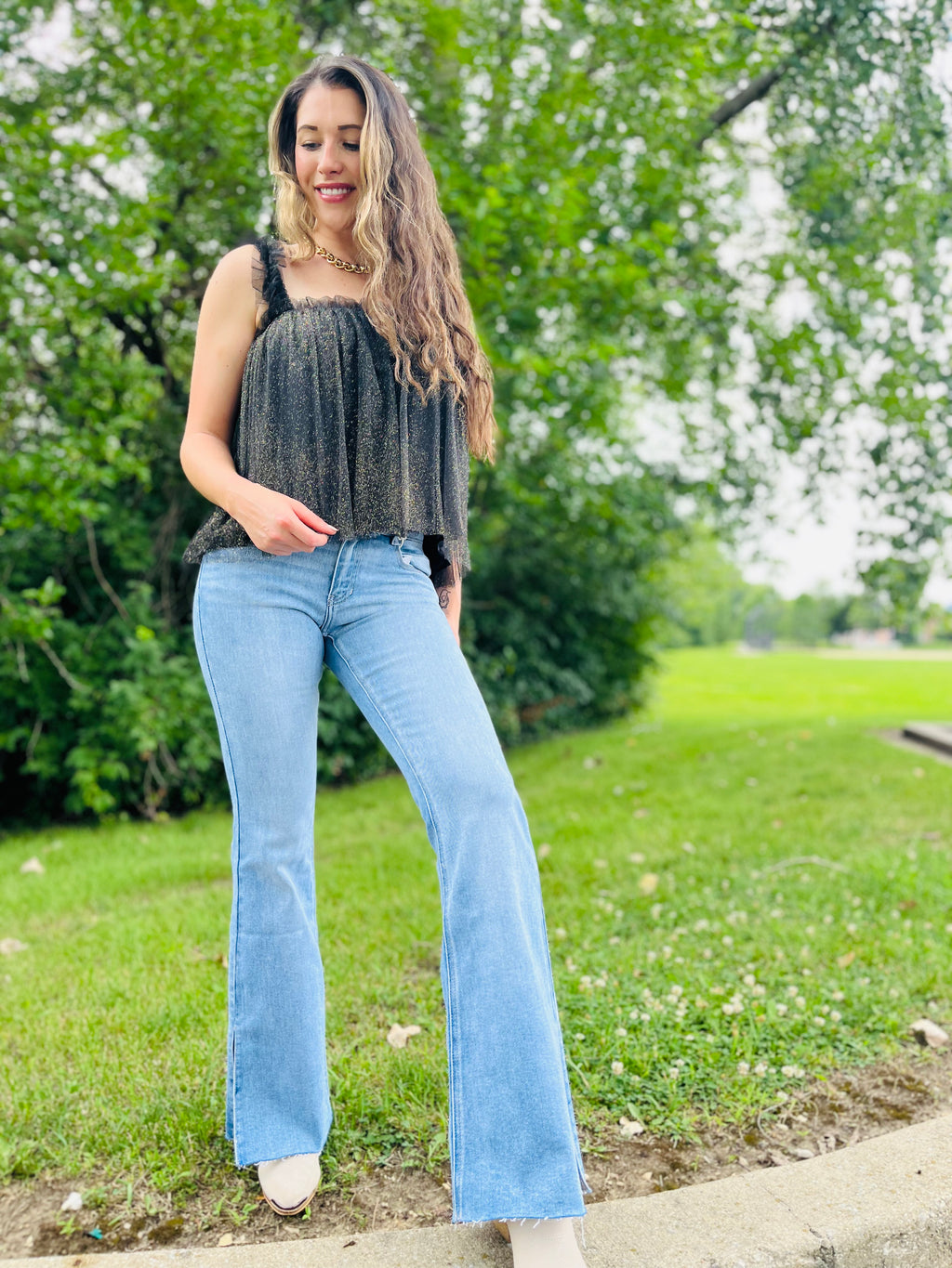 Jelly Jeans Pull On Flares with Knee Slits | White