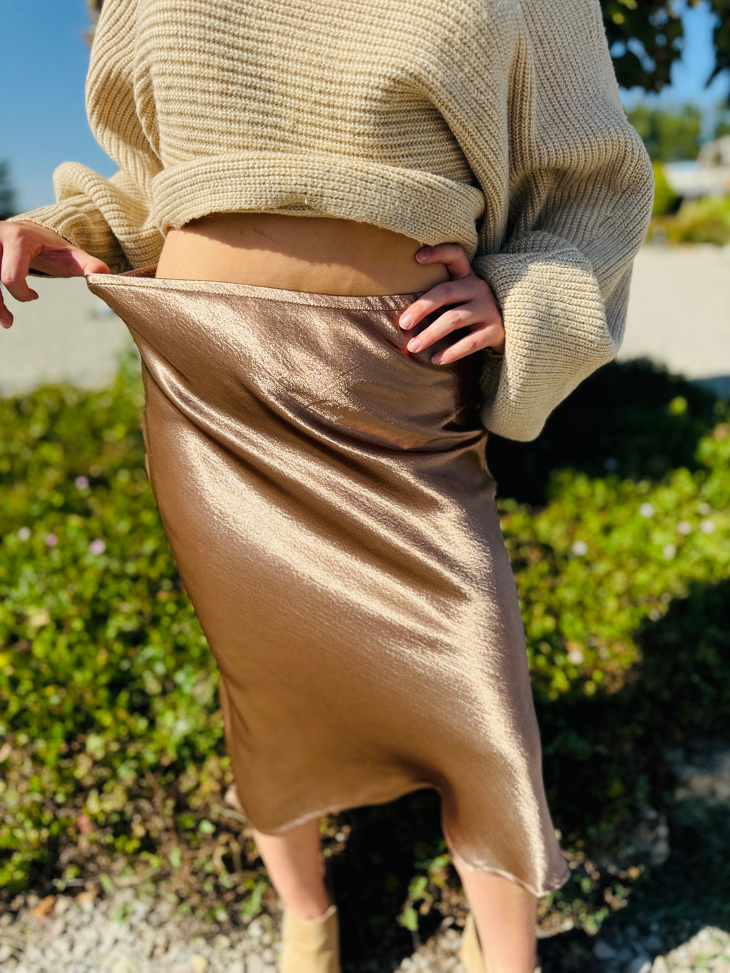Sippin Cider Contemporary Ribbed Knit Skirt | Mocha