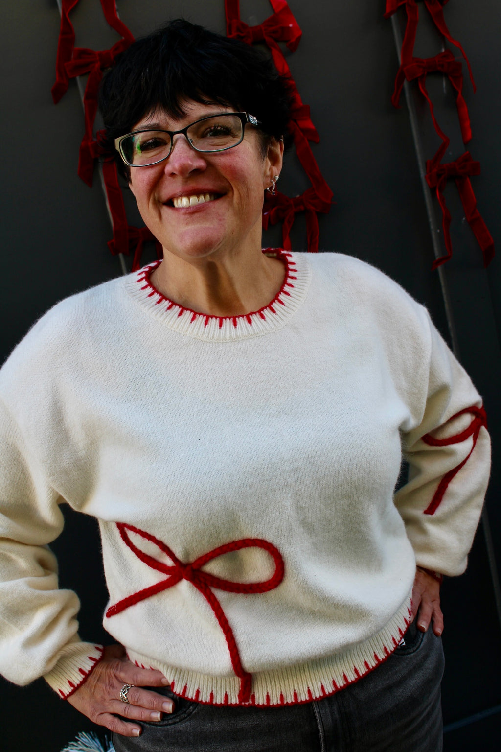Sequin Bow Chunky Knit Sweater | Oatmeal