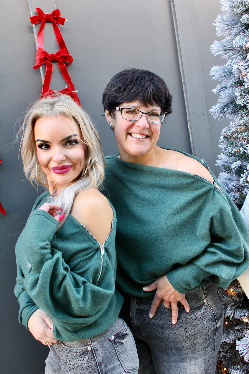 Zipper Shoulder Soft Boat Neck Top | Hunter Green