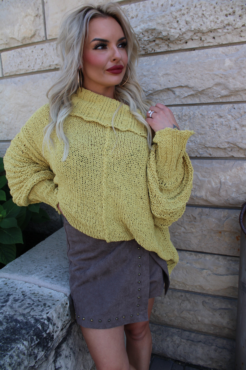 Harvest Moon Turtle Neck Knit Chunky Sweater | Mustard