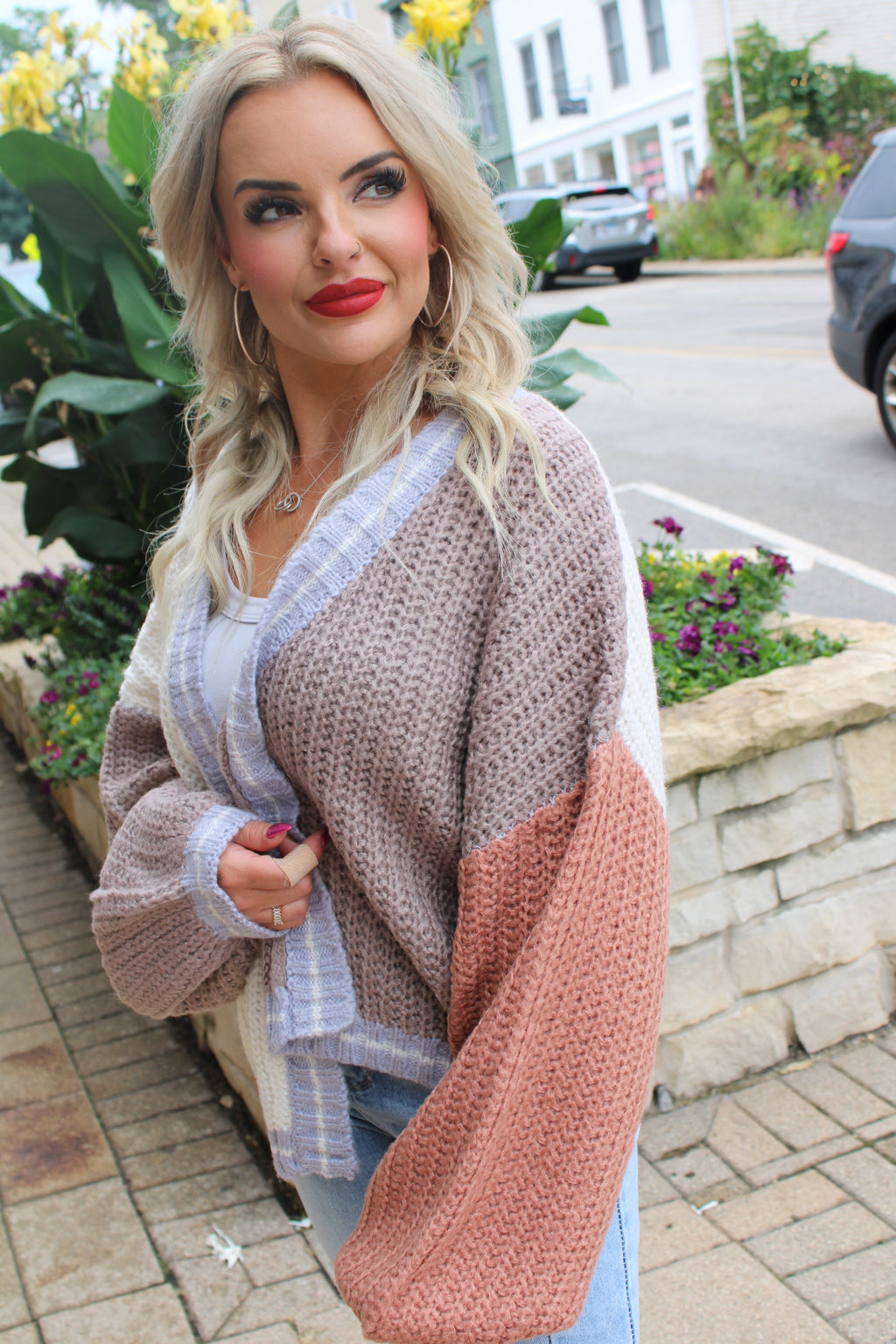 Sweet Cider Plaid Lace Up Sweater | Taupe