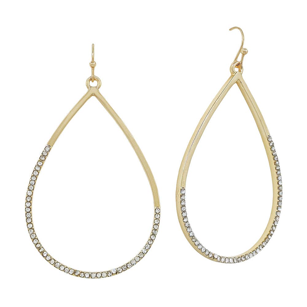 Gold and Rhinestone Open Teardrop 1.5" Earring